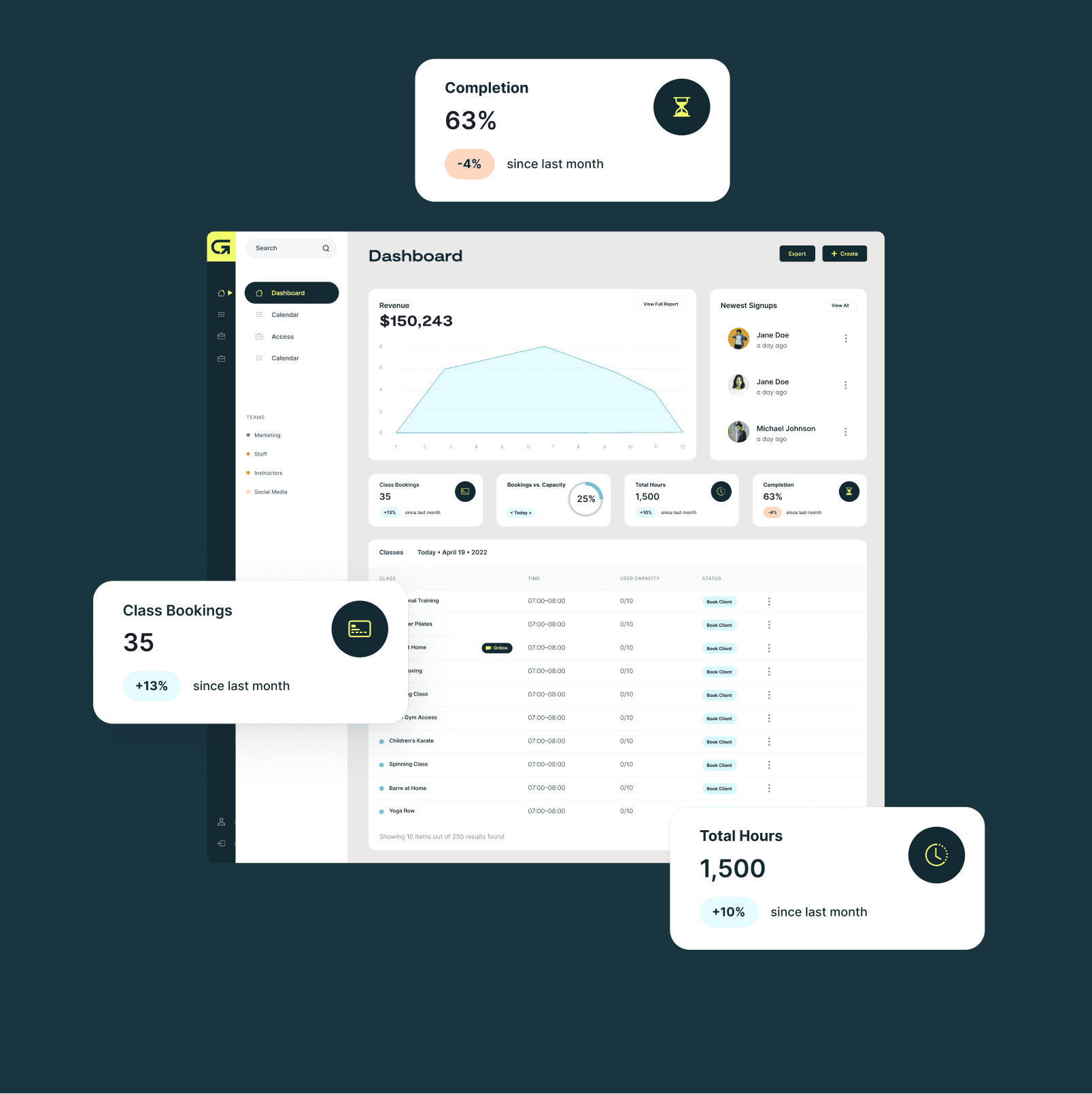 Identity and UI design for Glofox, an all-in-one fitness software solution. The project delivered a system that unites brand, product interface, and digital touchpoints around the concept of ‘limitless potential.’ By embedding the brand personality of the Motivating Coach into a consistent design framework, the system ensures flexibility for diverse fitness businesses while maintaining a cohesive, future-facing presence worldwide.